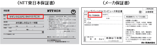 「サザンクロスPC-Sh01D」(メーカPC製品名:シャープ AVセンターパソコンPC-TX26GS)のセット品モニタ「サザンクロスPC-Sh01D(モニタ)」(メーカ製品名:シャープ 液晶マルチメディアモニターIT-PC26M1)確認方法につきまして、お手持ちの「保証書」または製品モニタ部の背面に貼り付けております「液晶マルチメディアモニター」と記載されている「ラベル」をご確認下さい。