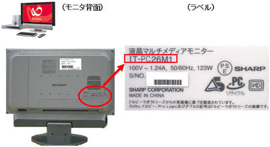 * 対象機器のモニタの背面にあるラベルが「液晶マルチメディアモニター(型番:IT-PC26M1)」と記載されているお客さまが対象となります。