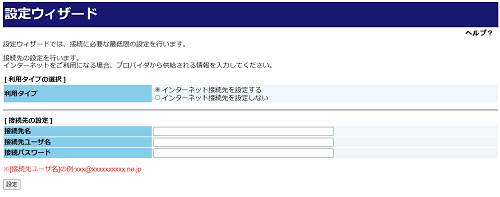 5-c. [設定ウィザード]に接続に必要な最低限の設定を行い、[設定]をクリックする
